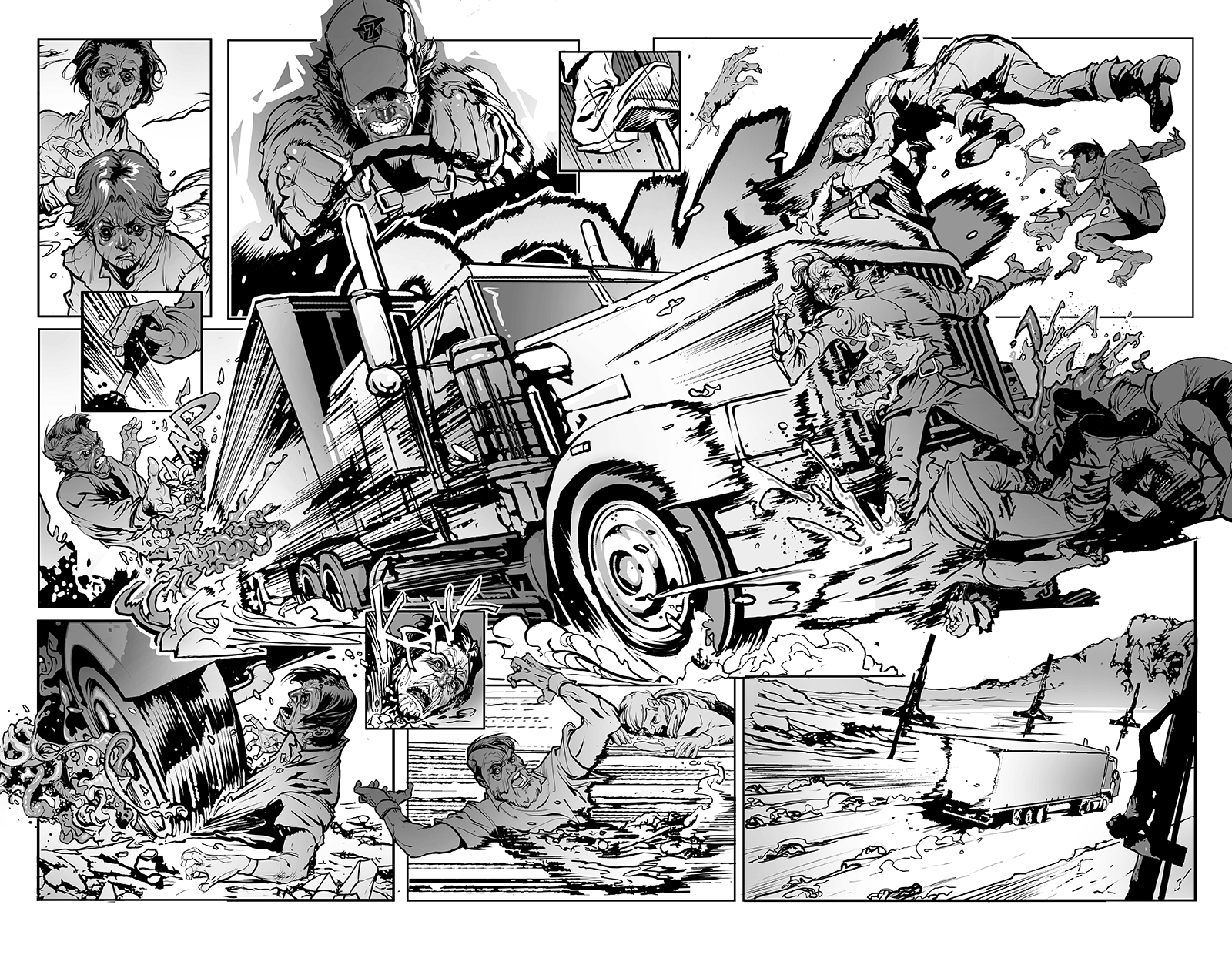 • “BIG RIG should cement Nathan Gooden as one of the best comic artists ever. Full stop. Each page is gorgeous and dripping with demonic detail. With a story by Post Malone and Adrian Wassel that is all gas and no brakes, BIG RIG is a master class in kick ass. It's a must buy, must read and then must immediately reread.” — DB Andry (Resonant, Creepshow, Denizen)