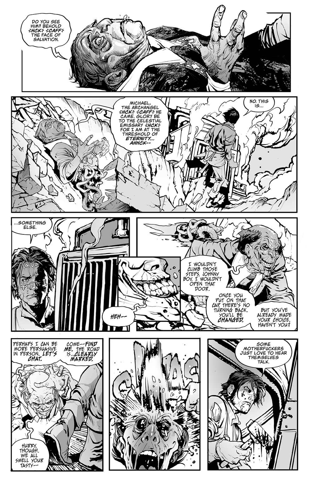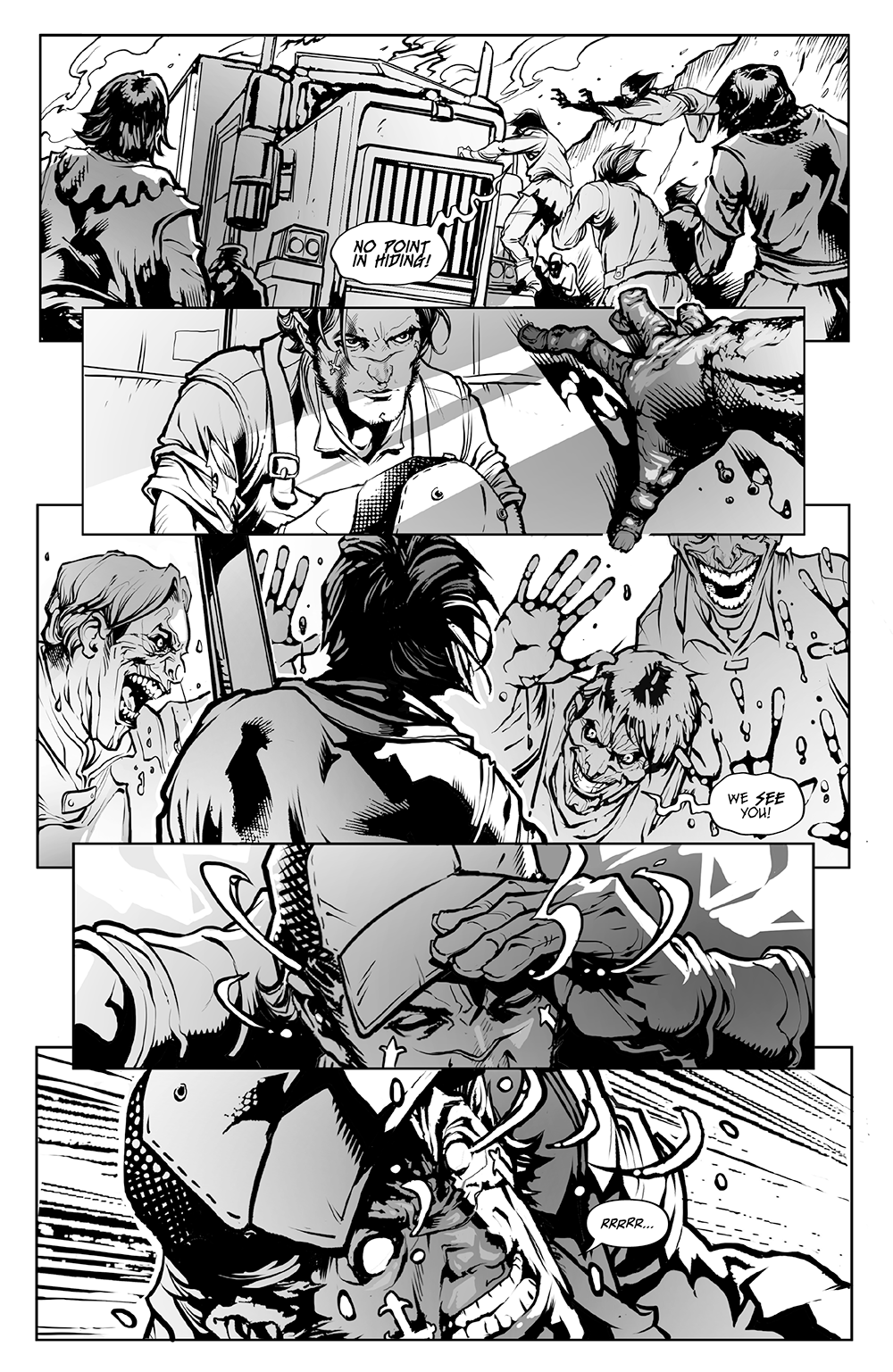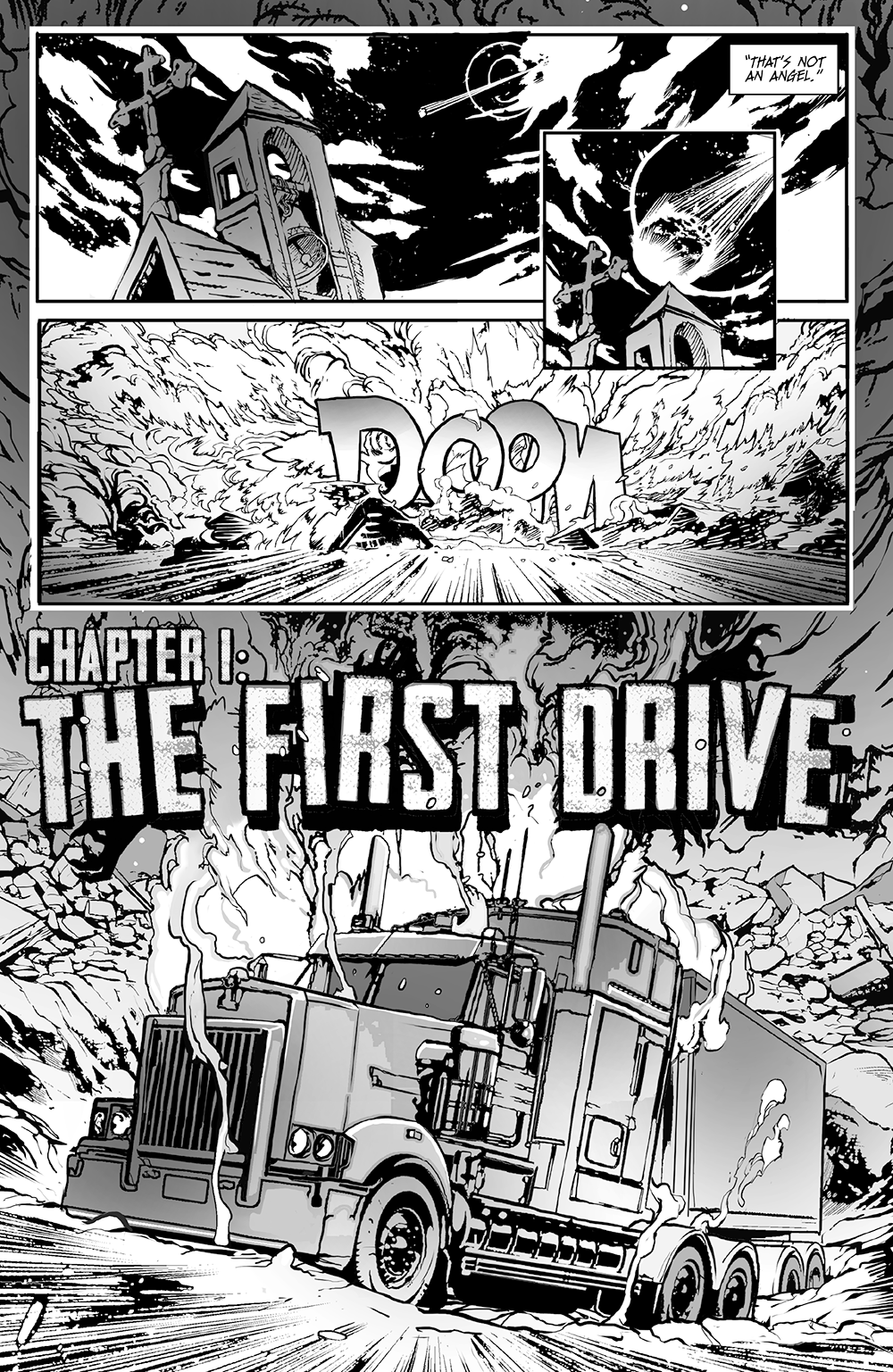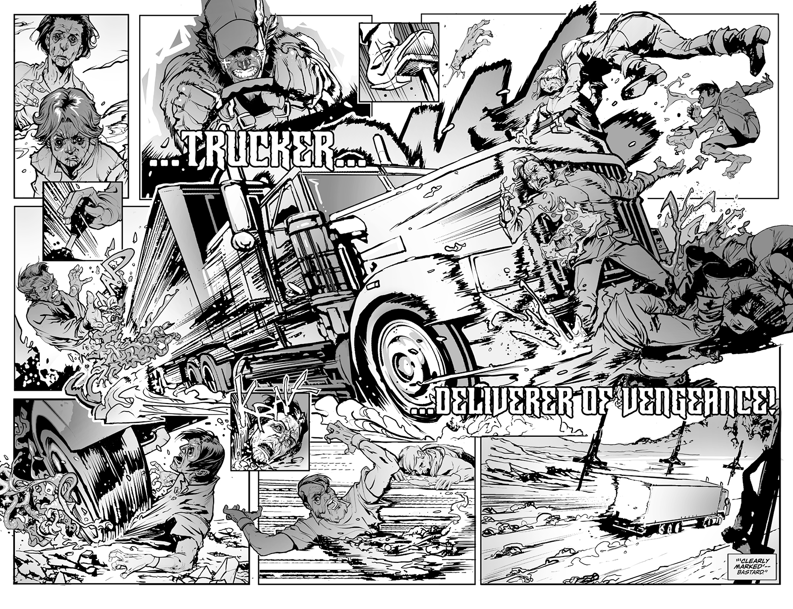 The Dark Ages… Demon hordes plague Europe as Hell invades Earth. The Six Petals, a secret sect of The Knights Templar, pray for a holy weapon to drive back the scourge. What crashes to earth instead is The Rig, a fully loaded tractor trailer. In the aftermath of its arrival, the only man left standing is an enigmatic former priest. He will become Trucker and lead the fight against Hell—with 25 tons and 18 wheels of demon-slaying machine.